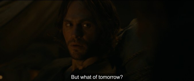Many fans of Tolkien’s works have decried this scene for contradicting Sauron’s character (he tries to reason with the orcs, where he dominates them in the books with fear and terror), but I think this scene is a clever look at Sauron’s journey as a character. Originally, he was a being who loved order and perfection, but during his time as Morgoth’s servant Sauron was corrupted into being willing to enslave, torture, and kill others to get what he wanted. With Morgoth gone, some of Sauron’s original goodness is poking through, and this scene shows him at the halfway point between the good spirit he was originally, and the hate-filled tyrant of the Lord of the Rings trilogy.